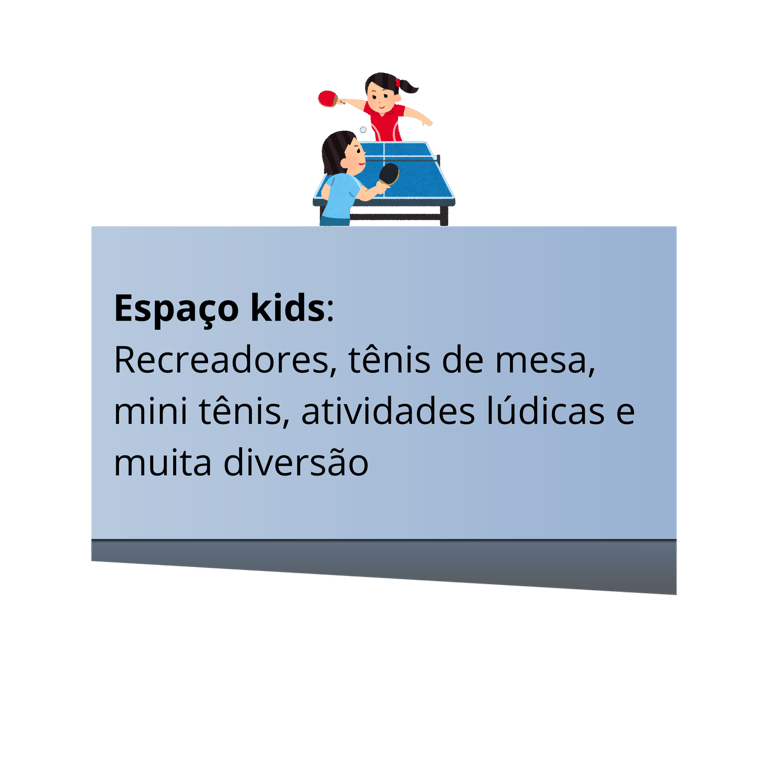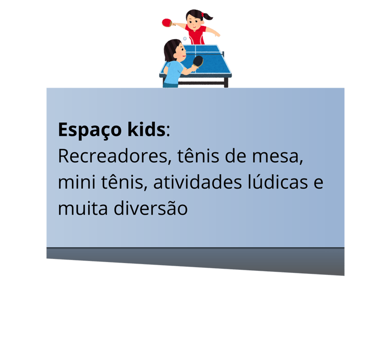 Nesta 2ª edição contaremos com sete (7) quadras de tênis de saibro indoor e mais três (3) mesas de tênis de mesa para nossas competições, integração e lazer, além de espaço de recreação para nossas crianças.